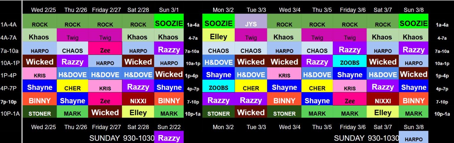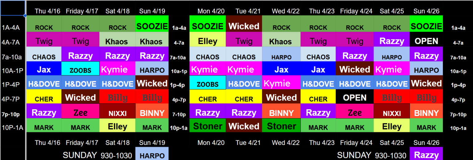 🤘 Nothing is set in stone. You may find any of us DJ’ing at different times as the need arises. That’s just how we roll at RCZ…so now LET’s ROCK!! 🤘